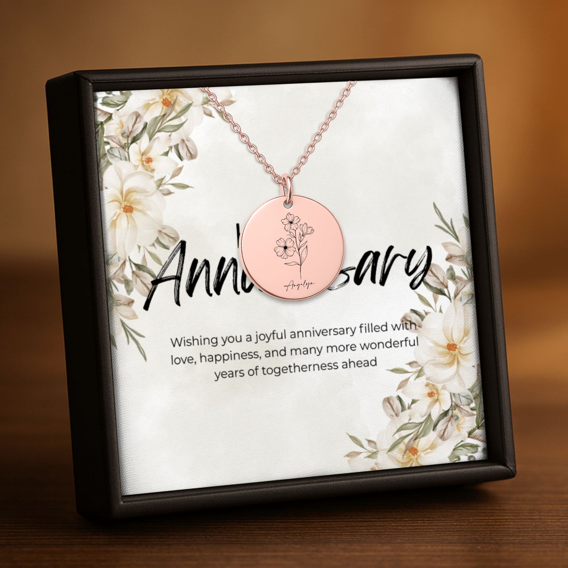 Name & Birth Flower Coin Necklace Gift with Custom Message Card